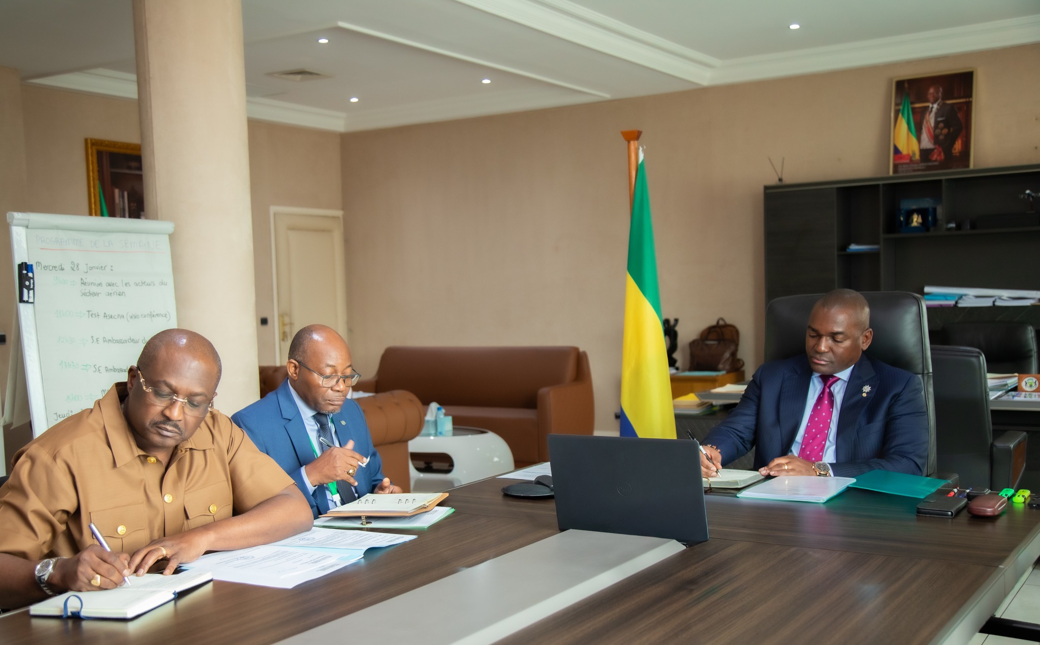 Le Ministre d’État, Ministre des Transports, de la Marine Marchande, chargé de la Logistique, Monsieur Ulrich MANFOUMBI MANFOUMBI, a réçu ce 31 Janvier 2026 en audience une délégation chinoise conduite par la société ZMEV Limited, introduite par son partenaire économique gabonais AZMAT. Cette rencontre s’inscrit dans le cadre des initiatives visant à soutenir le développement industriel et économique du Gabon, notamment dans le secteur de l’industrie automobile.
